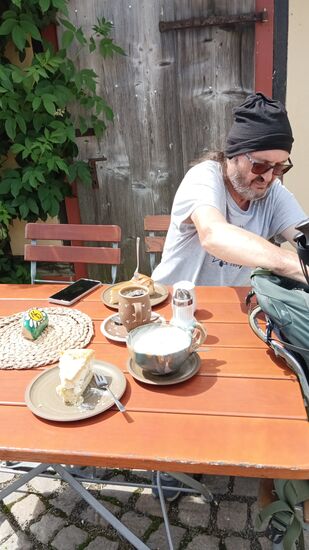 Wir genießen den leckeren Kuchen und Kaffee. Im Hofladen gibt es eine riesige Auswahl an Ziegenkäse aber es ist zu warm und wir müssen noch ein ganzes Stück laufen bis wir wieder zurück sind.