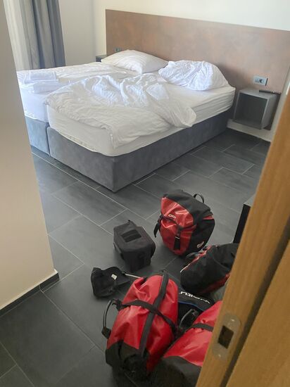 Ich frühstückte im Hotel und trug anschließend die Sachen runter auf die Straße um sie danach auf das Rad zu schnallen. Es war 10:30 Uhr und ich war sehr gespannt auf die kommende Strecke. Ich hoffte sehr, dass die Strecke nicht überwiegend an der Hauptstraße lang führen würde.