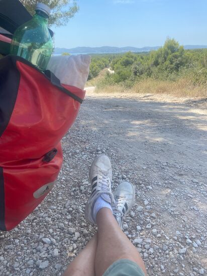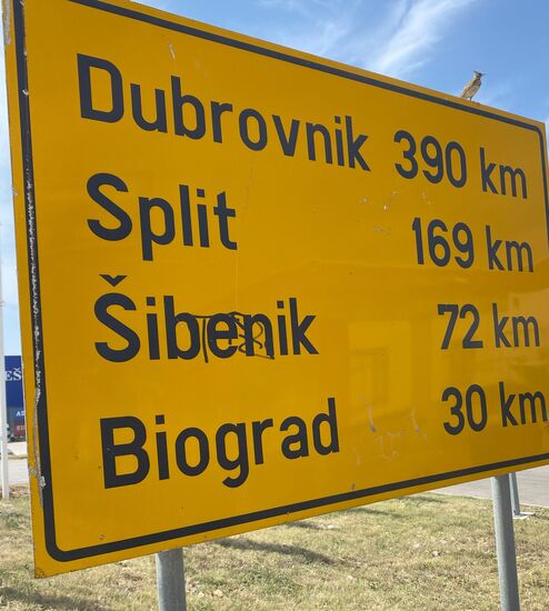Es war krass heiß. Irgendwie wirklich nochmal eine andere Dimension als die letzten Tage. Aber das beunruhigte mich nicht, da ich es ab jetzt wirklich entspannter angehen konnte. Es war Sonntag und Donnerstag sollte mein Nachtzug von Split nach Wien abfahren. Ein Straßenschild sagte, dass es ab hier nur noch 169 km nach Split sein sollten. Oh Mann, ich hatte also wirklich Zeit. 169 km in 4 Tagen. Wirklich ungewohnt.