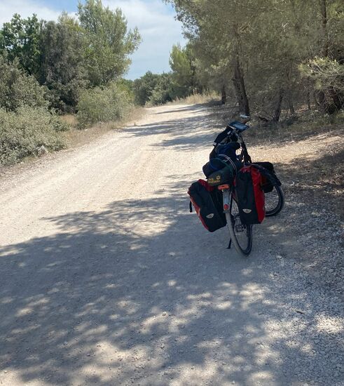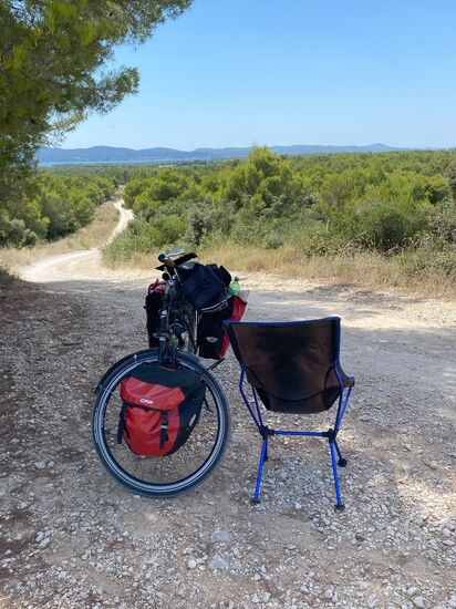Es war eine richtig schöne Etappe. Keine Menschen. Ich fand einen Schattenplatz am Weg, holte meinen Stuhl vom Rad und gönnte mir eine längere Pause.