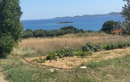 Es folgten ruhige Straßen direkt am Wasser.. Überall waren direkt an der Straße kleinere Plätze, wo eng an eng Autos standen und die Leute im Wasser badeten. Ich kam auch durch kleinere touristisch dominierte Dörfer. In Turanj setzte ich mich in eine Bar. Ich merkte trotzdem noch, dass gesundheitlich nicht alles gut war. Ich hatte ständig ein leichtes Schwächegefühl. Gut, dass ich kaum km schaffen musste. Nach Biograd na Moru kam mal wieder eine total schöne Strecke über Wege ohne Häuser und Straßen.