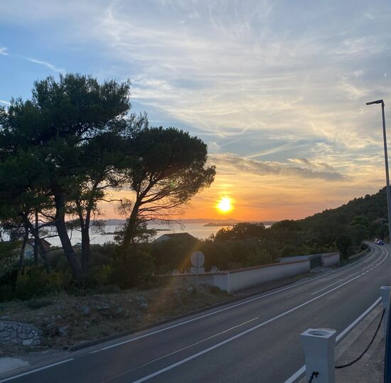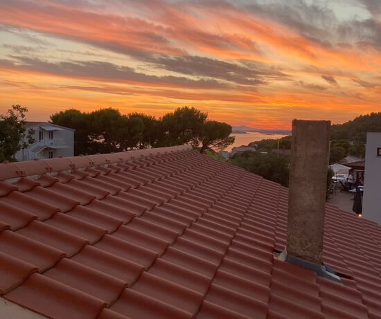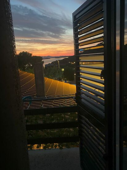 Der Ausblick vom Balkon war mega schön. Mit der Sonne über den Dächern und das Meer einfach unfassbar.
