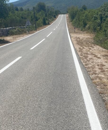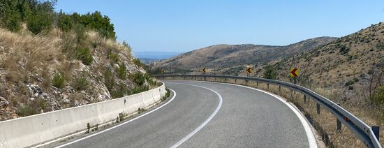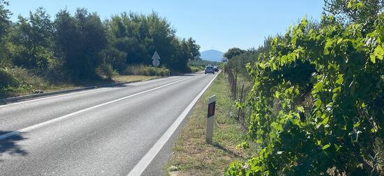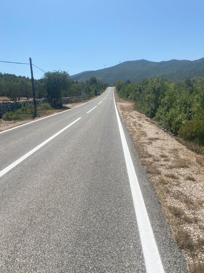 In Sebenik besorgte ich mir bei einem Bäcker in einem Supermarkt noch Getränke und was zu Essen und war danach wieder raus aus der Stadt. Die Temperaturen waren wieder hoch. Ich wollte heute kurz vor Split kommen. Die direkte Strecke sollte dabei nochmal mit Bergetappen gesegnet sein.