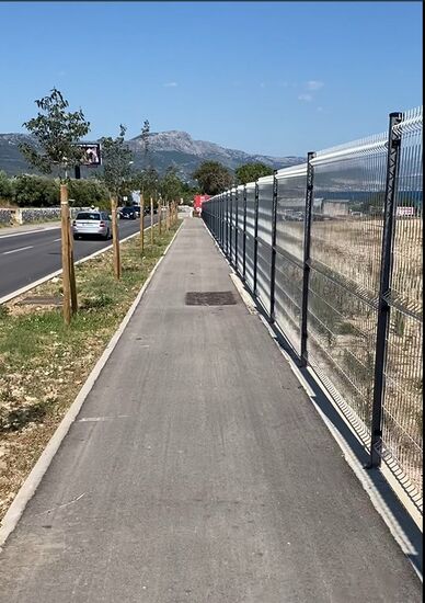 Unten angekommen war ich auf einmal direkt am Flughafengelände von Split. Das Umfahren des Flughafens klappte irgendwie nicht so richtig und ich war irgendwann mitten auf einem Weg im Gestrüpp der vor einem Tor endete. Später fuhr ich auf der Hauptstrqße weiter und fuhr direkt am Flughafeneingang vorbei.