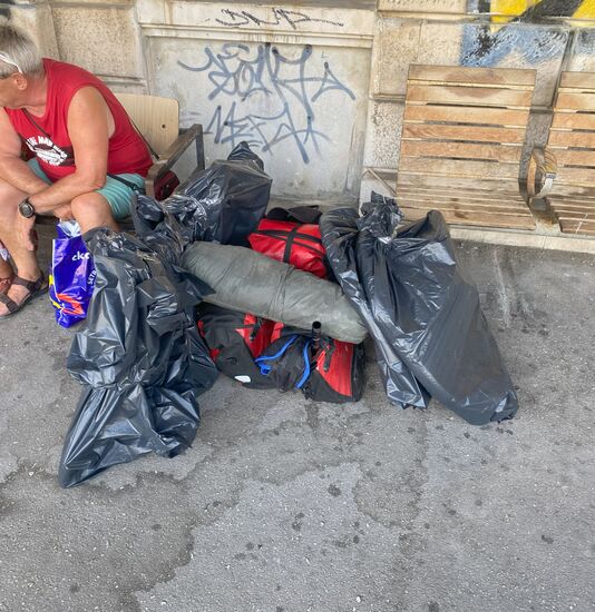 Am Bahnhof von Split musste ich dann mein Rad auseinanderbauen. In der Hitze wurde ich von den restlichen Leuten am Bahnhof bei meiner Arbeit beobachtet