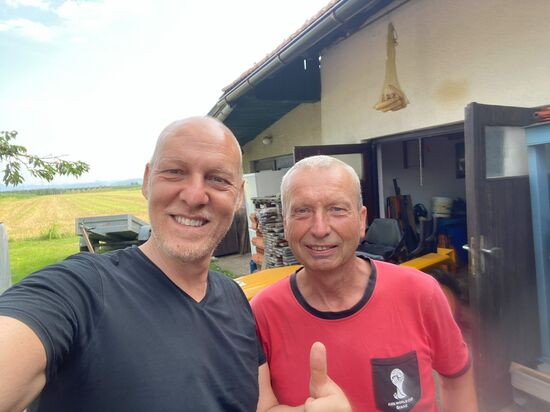 Er wohnte nur ein paar Meter von der Stelle entfernt. Ich folgte ihm, stellte mein Rad bei ihm ab und dann fuhren wir nach Prebold. Das waren nur gut 3-4 km.