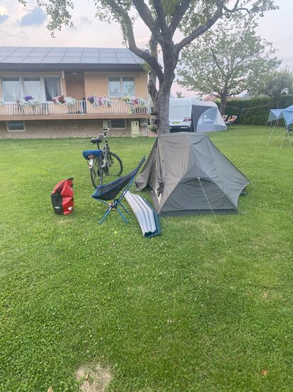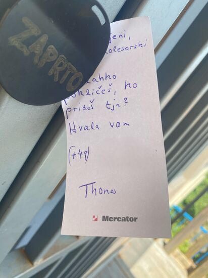 Ich schob mein Fahrrad wieder zum Campingplatz zurück. Der Wirt wunderte sich natürlich. Ich erklärte ihn alles und baute mein Zelt wieder auf. Der Tag verging und ich sprang nochmal in den Pool. Früh schob ich mein Rad nach Prebold in die Werkstatt, hing ein Zettel mit meiner Nummer an die Tür der Werkstatt und verbrachte Stunden in einem kleinen Restaurant in der Nähe.