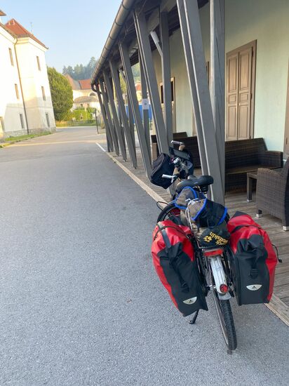 Der Plan war heute am Meer anzukommen. Dazu wollte ich die Slowenisch- Kroatische Grenze überqueren und nach Kroatien einreisen. Laut Komoot waren es 113 km. Hört sich erstmal nicht wenig an, aber erleichternd kam dazu, dass ich mich zwar von 490 mNN auf 635 mNN hochschrauben musste, am Ende das Ziel aber am Meer liegen sollte und das bedeutet eine Rückkehr auf die Nullhöhe.