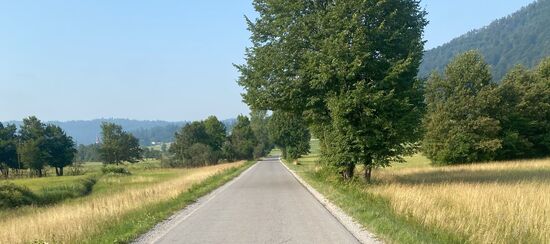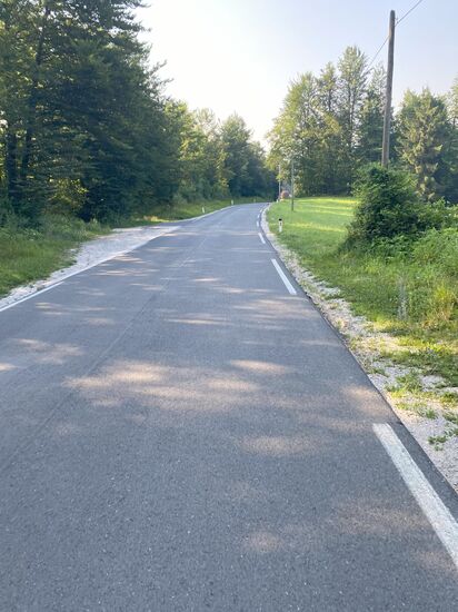 In Rakitnik kam ich auf einmal auf eine Landstraße die stärker befahren war. Zumindest nach slowenischem Standard. Es schien, als ob es der typische Reiseverkehr ans Meer war. Hin- und wieder wurde ich aus geöffneten Windschutzscheiben angefeuert.