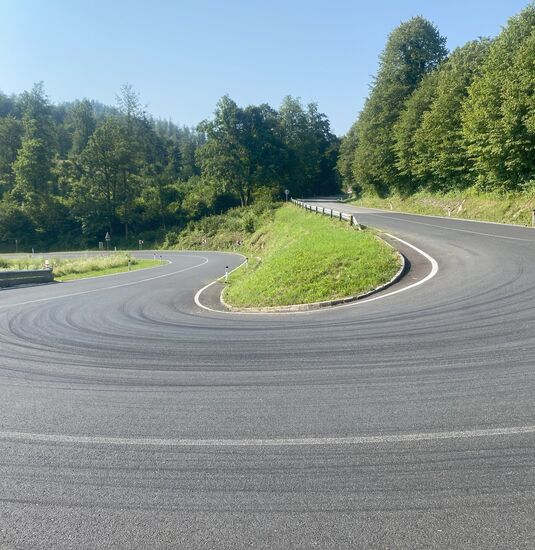 Ich fuhr am Rand des Nationalparks Rakov Skocjan. Ein großes zusammenhängendes Waldgebiet. Wobei Slowenien ohnehin zum überwiegenden Teil aus Wäldern besteht. Mit dem Wirt vom Campingplatz in Dolenja vas hatte ich über Bären gesprochen. In diesem Gebiet gab es Braunbären. Im Internet fand ich ein paar Berichte. Der letzte Bärenangriff auf einen Spaziergänger war 2023, 20 km südlich von Ljubljana. Hin und wieder wurden Bären auch überfahren. Slowenien war nun mal das Land der Wälder, Braunbären und Bienen. Einfach wunderschön. Ich schaute einfach nur, dass die Wege nicht zu tief in die Wälder führten und folgte eher den Landstraßen. Mir ist schon klar, dass die Wahrscheinlichkeit auf einen Bären zu stoßen verschwindend gering waren, aber zwischen einer Braunbärenmama und einem Braunbärenjungen wollte ich einfach nicht kommen. Hatte irgendwie die aktuellen Bilder vom Bärenangriff auf den Tierfilmer Andreas Kieling in Rumänien im Kopf.