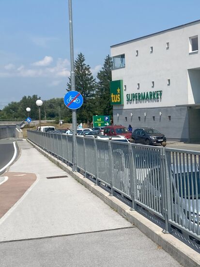 In Ilirska Bistrica fand ich einen großen Supermarkt. Hier kaufte ich mir eine Salami und sonstige Energie. Außerdem natürlich Wasser. Es war mittlerweile wieder richtig heiß. Für mich war es immer wichtig, dass ich den Fahrtwind spürte. Stehend in der Sonne war es wirklich fies.