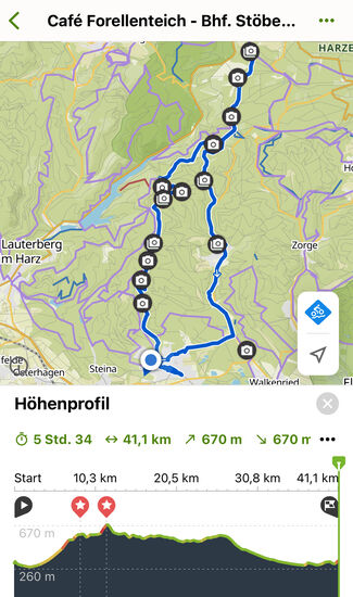 Von Bad Sachsa zum Café Forellenteich. Ca. 2:25 Stunden hat es wegen der vielen Fotopausen (ca. 55 Minuten) gedauert.