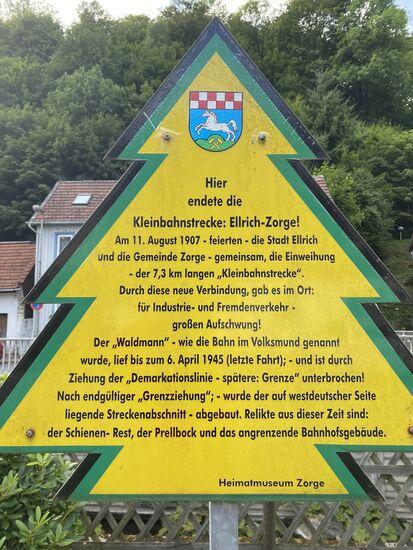 Diese Kleinbahn fuhr nur zwischen Ellrich und Zorge und wurde nach dem Zweiten Weltkrieg abgebaut. Ellrich liegt in Thüringen und Zorge in Niedersachsen.