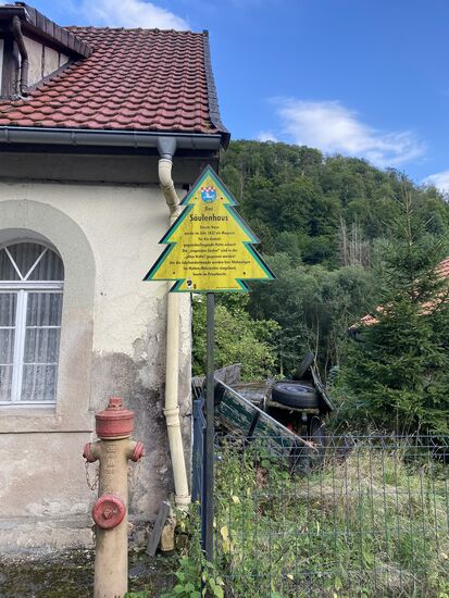 Früher war es ein Magazin (Lager) für die Hütte. Später wurden dort Wohnungen für die Hüttenarbeiter eingebaut.