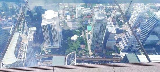 Unser Hotel liegt in Asok. Direkt an der Sukhumvit, recht günstig an zwei Bahnlinien. Eine davon können wir gut nutzen, um in die Nähe des Skywalk zu kommen. Da wir recht früh dort waren, war auch kaum Betrieb.