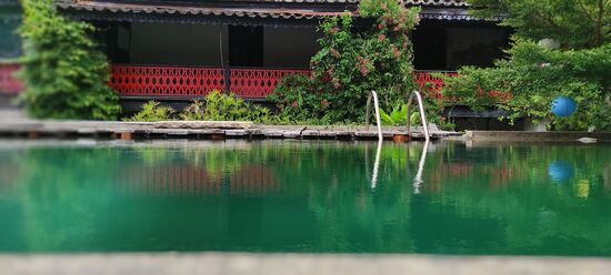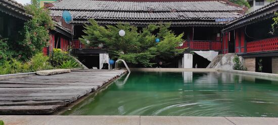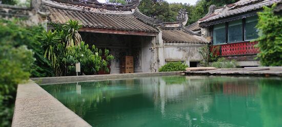 Es gibt hier eine alte chinesische Villa. Der Pool wurde nachträglich eingebaut. Gegen einen kleinen Obulus kann man über die Balustrade im ersten Stock laufen. Das Geld wird für Renovierungen verwendet