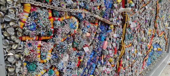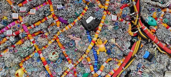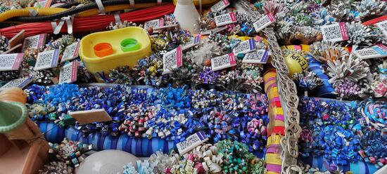 Wir wollten uns das von nahem ansehen. Es ist aus lauter (Plastik)müll gemacht... übrigens, hier ist das kein Thema, Plastik zu jeder Gelegenheit...