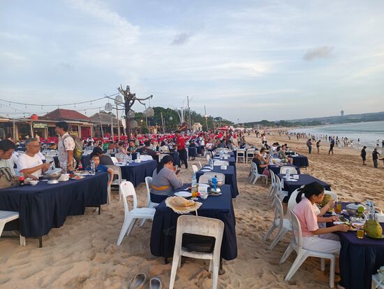 Den Abend verbringen wir am Jimbaran Beach. Hier gibt es einen großen Fischmarkt und am Abend entstehen riesige Strandrestaurants - natürlich vorwiegend Fisch und Meeresfrüchte. Zielpunkt für viele Ausflügler. Die Masse erschreckt uns...das eigentlich schöne Feeling am Strand ist einer Gastro-Industrie gewichen.