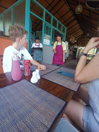 Raphael isst Fish and Ships, für uns gibt es gegrillten Snapper und Reis. Lecker. Und kleinen Besuch haben wir auch noch...