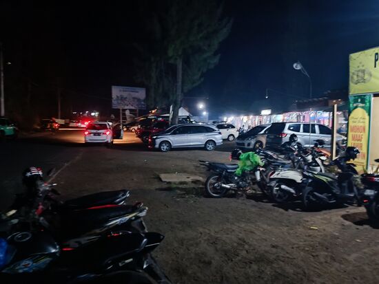 Der Parkplatz...ein bisschen Gastro, ein bisschen Verkaufsstände, ein Zeltplatz...auf jeden Fall eine größere Anzahl von Menschen. Balinesen, die sich als Guide anboten.