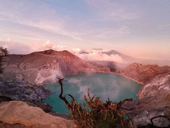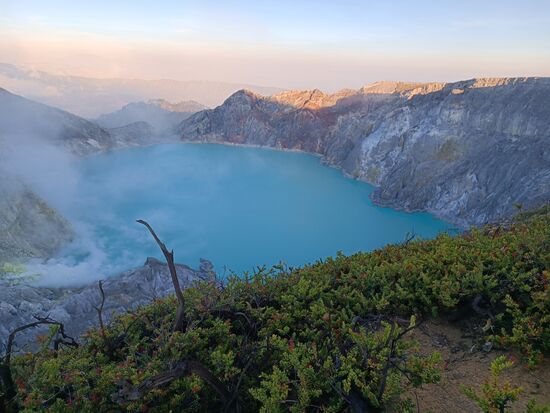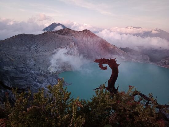 Au der linekn Seite des Sees, dort wo die Qualmwolken zu sehen sind, da ist der Schwefelaustritt...auf dem Weg dorthin sollten eigentlich die blauen Flammen sein.