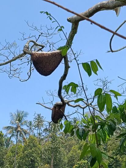 Später ging´s zu Fuß weiter. Optisch kein Highlight, aber der Geruch...ein Nelkenbaum, schon die Blätter versprühen den typischen Geruch. Später zwei Bienenvölker im Baum...