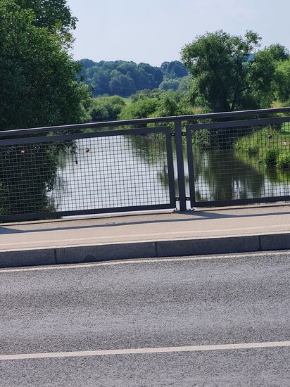 Mit "abgesenkten" Brückengeländer nochmals Roter Main von rechts und Weißer Main von links (leider vom Schattenwurf optisch beeinträchtigt).