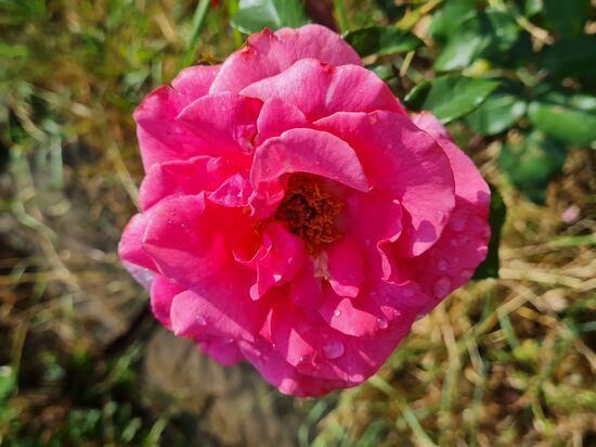 Schon bald auf der anderen Mainseite ein Weinhang mit einem Rosenstöckchen.
