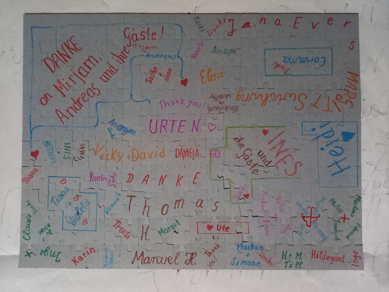 Am Abend setzen wir noch das Puzzel zusammen mit dessen Spenden die Renovierung des Klassenzimmer in der Schule Wangbay finanziert wurde.