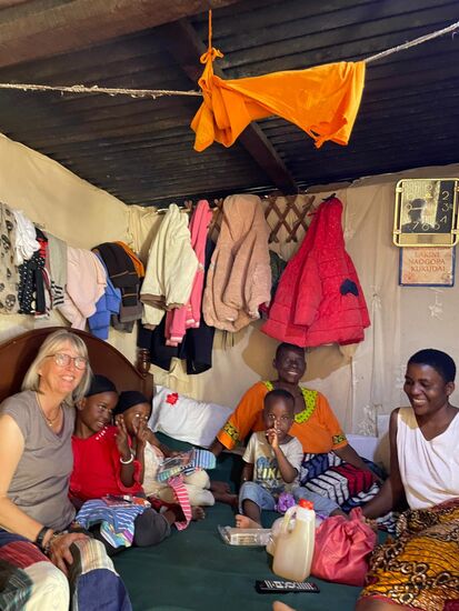 Eamon hat sofort Freude an dem Kratzheft. Für Maria sind diese Hausbesuche eine herausfordernde Erfahrung. Es scheint fast unbegreiflich das die Lebensumstände hier in Tansania soooo viel einfacher und härter sind als bei uns in der Heimat.