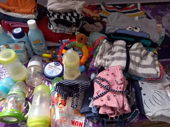 Während für Säuglinge inzwischen reichlich Kleidung vorhanden ist, Fehlt für die Größeren noch das eine oder andere.