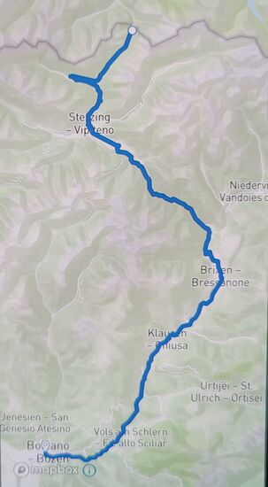 Dafür ist der Ausgang vom Bahnhof Brenner nur über eine Stiege hinunter und nach einem langen Gang und wieder einer Stiege hinauf zu erreichen. Ohne Hilfe von meinem Schatz wäre das für mich zu einem Problem geworden. Kurz vor zwölf starteten wir unsere Tour in den Süden von Südtirol.