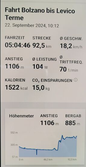 Endlich oben in Levico Terme angekommen, fiel uns ein, wir hatten noch kein Zimmer gebucht. Ein Blick neben der Straße ins Internet und wir fuhren auf gut Glück ins nächste Haus. Das BellaVista Relax Hotel**** hatte für uns ein passables Zimmer, einen Garagenplatz für unsere Bikes, am nächsten Morgen ein selten wunderbares Frühstück und das alles zum Preis von EUR 74,-- für uns beide!!!