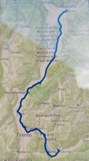 In Salurn war eine kleine Rast fällig. Gestärkt mit einem Espresso und einem gemeinsamen Bier traten wir dann die Weiterfahrt an.