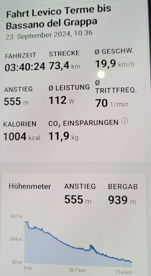 Um 11:00 h traten wir dann in die Pedale Richtung Bassano del Grappa. Für den späteren Nachmittag war Regen gemeldet.