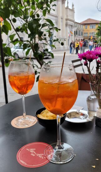 Heute sind wir zwar keinen Meter geradelt, dafür 20.621 Schritte gegangen. Nach einem feinen Abendessen gabs noch einen Barrique-Grappa auf Haus, welchen wir mit 2 netten Damen aus Brasilien und Belarus teilten. Sie waren neugierig was wir im Glas hatten. Beim netten Gespräch flippten sie aus, dass wir mit dem Rad unterwegs waren.