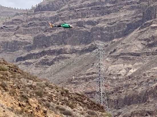 Wie werden die Stromleitungen von dem Mast auf der einen Seite des Barrancos zu dem Mast auf der anderen Seite des Barrancos gebracht?