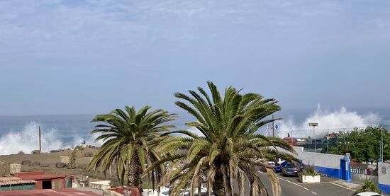 Wieder in der Nacht machen wir uns auf den Weg nach Puerto de la Cruz. Dort soll es einen schönen Parkplatz direkt am Meer geben. Wir erwarten einen ruhigen Parkplatz. Tatsächlich ist dieser fast voll besetzt. Wir ergattern noch einen Platz in der ersten Reihe hinter der Küste, hier brechen die Wellen laut tosend mit meterhohen Gischtfontänen.