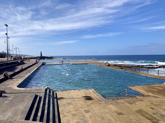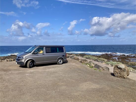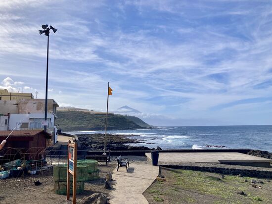 Wir verlassen Puerto de la Cruz und ziehen um auf einen Platz bei einem kleinen Dorf, direkt am Meer, aber ohne Gischt. Auf dem Platz stehen unter Tags ein paar Fahrzeuge von Anglern. Abends wird es leer und zur Nacht gesellt sich der eine oder andere umgebaute Transporter mit regionaler Zulassung dazu.
