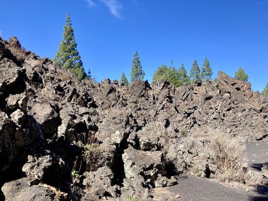 Im Nationalpark Teide ist es strikt verboten, mit dem Auto zu übernachten. Es gibt jedoch ein paar wenige Plätze unter der Verwaltung des Gabildo, der Inselregierung, wo gegen vorherige Anmeldung Übernachtungen möglich sind. Ich lade die hierfür nötige APP aufs Telefon und möchte einen Platz für 2 Nächte reservieren. Funktioniert nicht. Wir fahren trotzdem, manchmal registrieren die Ranger solche Gäste auch nachträglich. So jedenfalls haben wir es gehört.