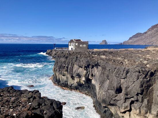 Wir spazieren auf einem sehr schön angelegten Küstenwanderweg. Die Aussichten auf die, von der Brandung erodierte Lavaküste, ist spektakulär. Auf diesem Weg sehen wir auch das, nach eigenen Aussagen, kleinste Hotel der Welt mit 4 Zimmern und einer Suite.