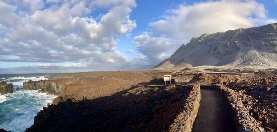 Hier ist ein planierter Wanderweg entlang der Küste, durch die schroffe Lavalandschaft. Den wollen wir gehen, aber nicht heute.