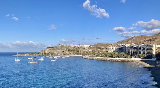 In Arguineguin gehen wir erst mal Churros essen. Das sind im schwimmenden Fett herausgebackene Teigstangen. Besonders lecker in Zucker eingetaucht zum Kaffee.
