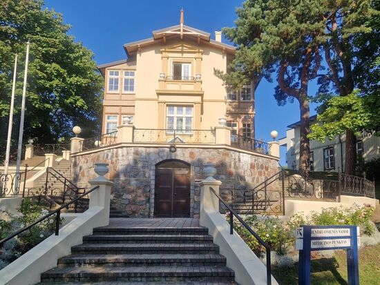 Am nächsten Tag fahren wir nach Nida (Nidden) und parken dort im Ortszentrum. Eine kurze Wanderung führt uns zum Thomas-Mann-Haus, daneben kann man den berühmten "Italienblick" auf das Haff bewundern. Wir gönnen uns einen Kaffee auf der Terrasse des Hauses und gehen dann zurück durch den gepflegten Ort, um im Grill House'as einzukehren.