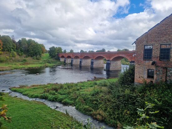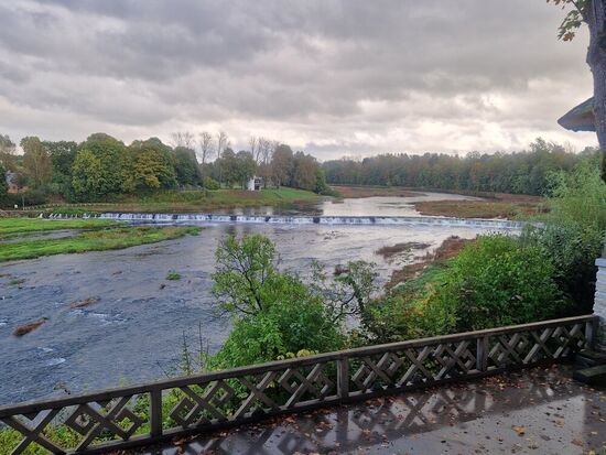 Einen längere Pause legen wir in Kuldiga (Goldingen) ein. Hier regnet es zunächst kräftig, später bessert sich das Wetter. Wir bummeln durch die Liepajas iela und kehren zum Lunch in der Kafejnica Staburadze ein. Unser Rundgang führt uns zur alten Brücke und zum Wasserfall Ventas Rumba, dem breitesten Wasserfall Europas.