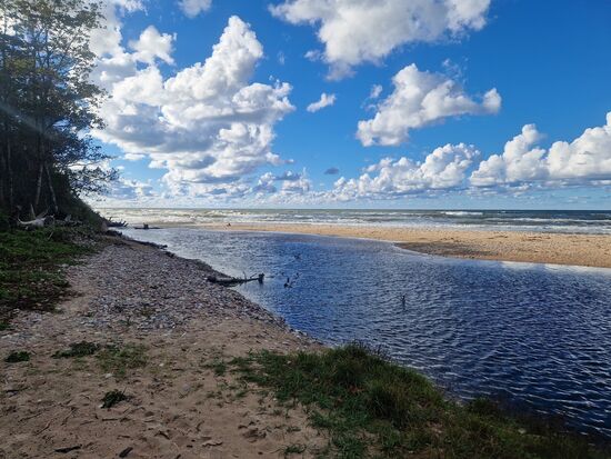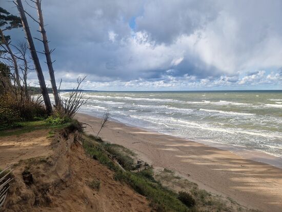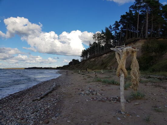 Am letzten Tag wollen wir die Strände in der Umgebung erkunden. In Jurkalne gelangt man auf einer langen Treppe an der Steilküste hinunter zum Strand. Nach einer Strandwanderung nach Süden gehen wir Mittags in den Pilsberģu krogs gleich nebenan. Die Gaststätte ist gleichzeitig eine interessante Kunstgalerie. Am Nachmittag geht es wieder hinunter zum Strand, diesmal ein Stück nach Norden. Am späten Nachmittag fahren wir noch zu einem Strand etwa 5 km südlich an der Mündung des Flusses Rīva.