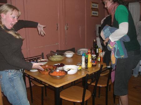 Unsere Unterkuenfte waren super gemuetlich und wir konnten sogar abends alle zusammen am Kamin sitzen (hier ist schliesslich Winter!). Unser Tourguide war unter anderem auch Koch und somit war das Essen auch nicht uebel. Am ersten Abend gab es Kaenguruh (jaja, sollte ich eigentlich nicht essen!), was nach der miserablen Kaenguruh-Pizza in Sydney wieder einiges gut machte. Es schmeckt doch!!!
