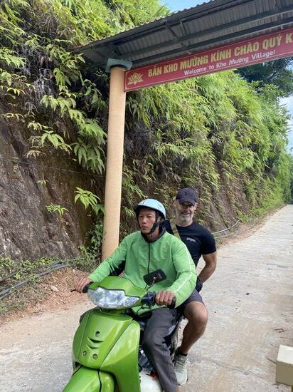Wir halten an einem Wasserfall in Hieu Village, bewundern die Natur und dann geht es weiter zu den Wasserrädern. Wir werden stets von Wasserbüffeln, Hunden, Schafen etc. begleitet. Einige, etwas längere Strecken werden von freundlichen Mopedfahrern oder Fahrerinnen, für ein paar Cent angeboten! Ja und bei den Temperaturen nehmen wir das Angebot gerne an.