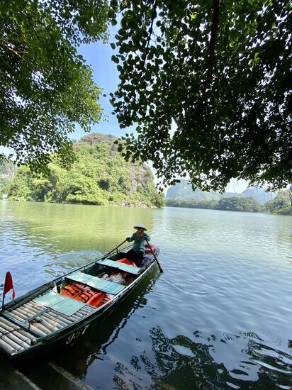 Wie die berühmte Schwester in Nordvietnam (Halong Bucht) wird auch die Trockene Halong-Bucht landschaftlich von steil aufragenden Karstfelsen geprägt. Nur, dass diese hier nicht aus dem Meer ragen, sondern Teil einer bergigen Landschaft mit Höhlen, tiefen Tälern, sattgrünen Reisfeldern und einem weit verzweigten Fluss-System sind. Also von trocken kann hier eigentlich keine Rede sein , aber wie auch immer ein Wunderwerk der Natur.