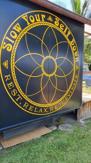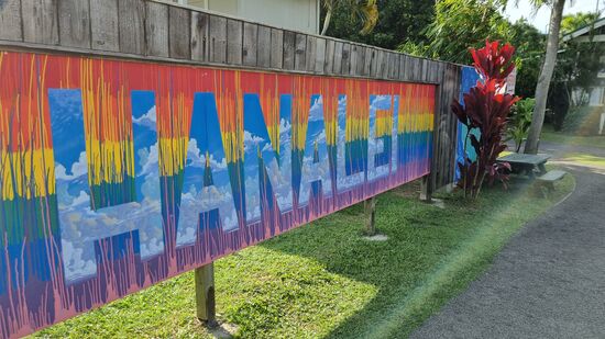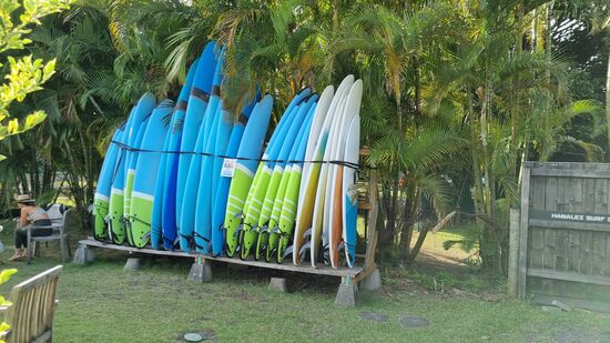 In Hanaima machen wir eine Kaffepause. Das ist ein schönes Surferdörfchen hier mit Buden, Verkaufsständen und Restaurants.